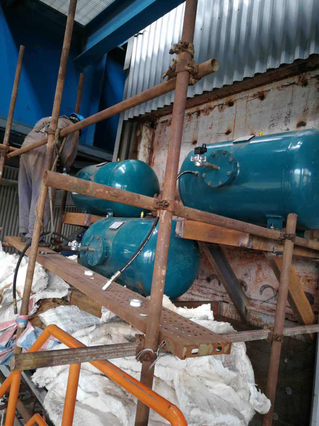 瀘州電廠脫硫改造項(xiàng)目設(shè)計(jì)空氣炮型號(hào)為KQP-B-300L,數(shù)量96臺(tái),噴嘴口徑為108耐高溫鑄造鴨嘴形噴嘴,配置控制箱為自動(dòng)不銹鋼雙開門,配套單向閥,油水過(guò)濾器。我公司與河南翔龍工程集團(tuán)有限公司(空氣炮安裝),受現(xiàn)場(chǎng)空間限制空氣炮噴管加長(zhǎng)5米到6米左右。安裝完成后現(xiàn)場(chǎng)調(diào)試一次驗(yàn)收合格。