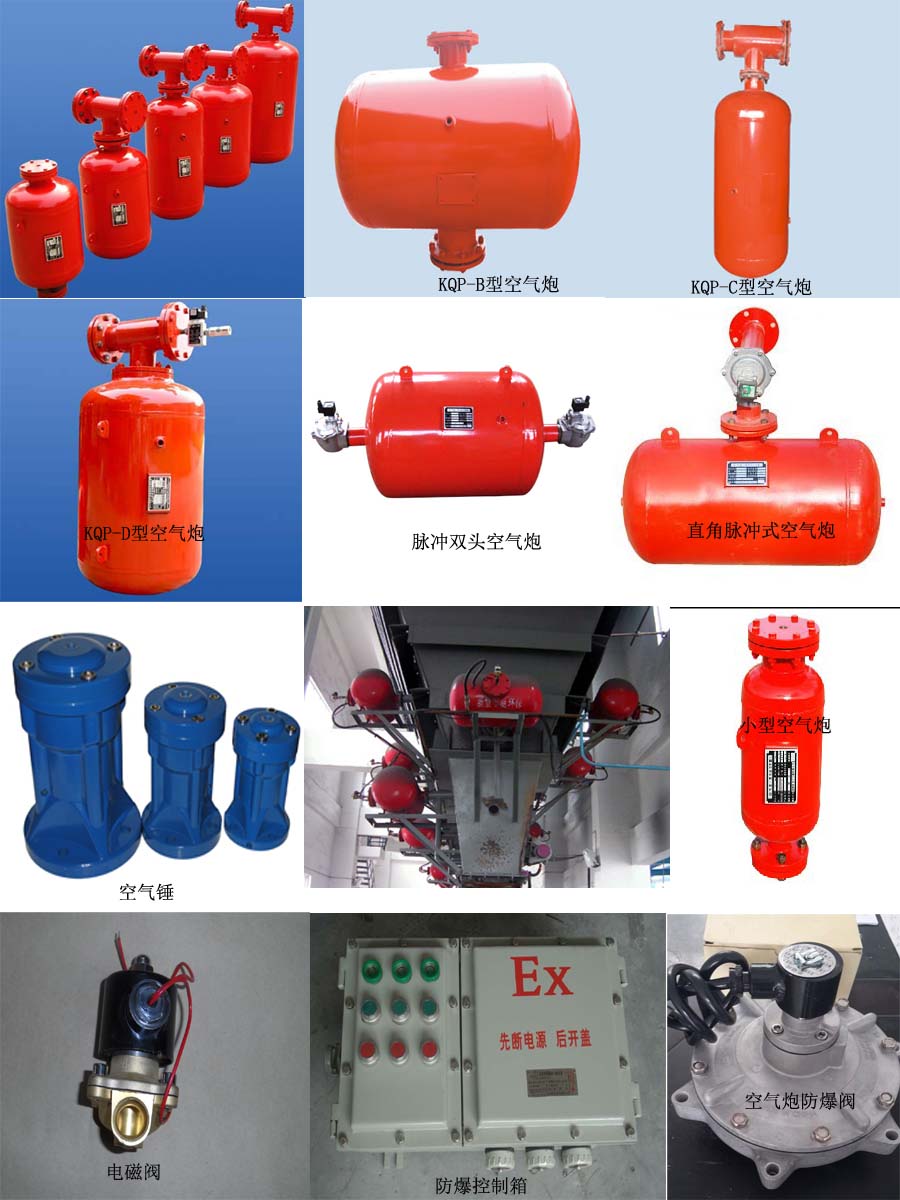 空氣炮廣泛應用于火力發電廠、煤礦及井下煤倉、洗煤廠、水泥廠、混凝土加工廠、鑄造廠、化肥廠、焦化廠、煤氣廠、化工廠、鋁廠、堿廠、鋼鐵廠、礦山、 碼頭、食品、糧食、飼料加工廠、鍋爐、制藥廠等重要貯運散裝物料的場合。